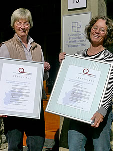 Gütesiegel Weiterbildung zum zweiten Mal erhalten (Mai 2010) ![]() Birgit Dittrich-Kostädt und Regina Sybert-Goldstein, die beiden Qualitätsbeauftragten der Evangelischen Frauenhilfe in Westfalen e.V., freuen sich über den Erhalt des Gütesiegels. Als Mitglied des Evangelischen Erwachsenenbildungswerkes Westfalen und Lippe e.V. erhielt Anfang 2010 auch die Erwachsenenbildung der Evangelischen Frauenhilfe in Westfalen e.V. die hohe Qualität ihrer Angebote bescheinigt. Die Zufriedenheit der Teilnehmenden, eine fachkompetente Beratung in Weiterbildungsfragen sowie eine professionelle Ausgestaltung der Angebote und Lernprozesse stehen im Mittelpunkt dieser Bemühungen und werden durch das Gütesiegel bescheinigt. Das Evangelische Erwachsenenbildungswerk Westfalen und Lippe e.V. ist eine anerkannte Einrichtung der Weiterbildung des Landes NRW. Das Zertifikat - Gütesiegel Weiterbildung - steht für die hohen und nachgewiesenen Qualitätsstandards der Evangelischen Erwachsenenbildung bei den unterschiedlichen Bildungsanbietern im Werk, u.a. auch bei der Evangelischen Frauenhilfe. Diese ist Mitglied im Werk und wendet das Qualitätsmanagement-System nach dem Gütesiegelverbund Weiterbildung seit 2008 an. Alle zwei Jahre wird diese Qualität von unabhängigen Externen geprüft. Die Bildungsangebote der Frauenhilfe entsprechen den Vorgaben des Weiterbildungsgesetzes NRW und sind allen interessierten Menschen zugänglich. Die thematische Vielfalt der Bildungsangebote reicht von beruflicher Bildung und Medienkompetenz, Lebensfragen, Theologie bis hin zu Studienreisen. |