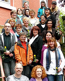 Qualifizierung von 19 Betreuungskräften für Demenzkranke abgeschlossen (Mai 2010) ![]() Voller Tatendrang freuen sich die frischgebackenen Betreuungskräfte für Demenzerkrankte über ihren erfolgreichen Abschluss. Am Fachseminar für Altenpflege in Soest haben 17 Frauen und 2 Männer in der Zeit vom 12. April bis 27. Mai 2010 erfolgreich an einer Qualifizierung teilgenommen. Der Abschluss wurde mit allen Beteiligten am 27. Mai 2010 gefeiert. Ungefähr 60 % aller in stationären Pflegeeinrichtungen lebenden Menschen leiden an einer Demenz. Da das Angebot auf großes Interesse stieß, wird der nächste Qualifizierungskurs vom 08. November bis 23. Dezember 2010 von der Evangelischen Frauenhilfe in Westfalen e.V. angeboten.