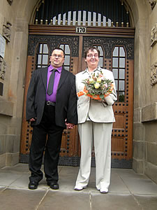 Hochzeit in Wengern gefeiert (Mai 2010) ![]() Christel Theiß und Jörg Brinsch haben sich getraut - sie haben am 14. Mai 2010 in Wetter geheiratet. Standesbeamtin Köhler und Bürgermeister Frank Hasenberg gratulierten dem frisch vermählten Paar. Der Hochzeitsempfang nach der Trauung für Freunde und Verwandte fand standesgemäß im TREFFPUNKT in Wengern statt. Es war die erste Hochzeit, die eine langjährig von dem Frauenheim Wengern betreute Person feierte. |