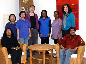 Pfarrerin Elizabeth Enjut Salang und Shakuntala Abraham von den Methodistischen Kirchen, Scholastica Choo von der Katholischen Kirche, Omana Mathew und Josephine Daniel von der Lutheranischen Kirchen und Mary Thomas von der Syrisch-Orthodoxen Kirche sind der Einladung des Frauenverbandes gefolgt. Die Sprecherin des Frauenkomitees, Shakuntala Abraham, und die Geschäftsführerin des Frauenkomitees, Mary Thomas, waren bei dem Begegnungs-Programm für die Malaysia Reise der Frauenhilfe im Juli letzten Jahres zur Vorbereitung des Weltgebetstages sehr hilfreich.