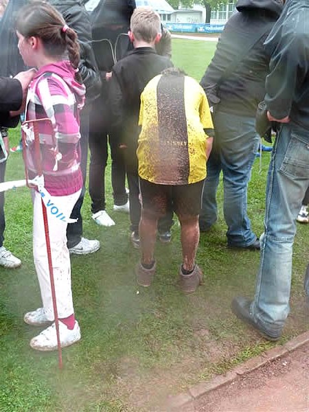 Die rote Asche spritzte bei jedem Schritt. Der Boden war tief, am Rand der Laufbahn bildeten sich Pfützen. Und obwohl die Kinder nur eine Runde auf der 400-Meter-Bahn des Soester Jahnstadions zu absolvieren hatten, sahen sie im Ziel aus wie nach einem Crosslauf.