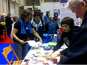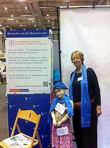 Der Stand trug die Bezeichnung „Patenschaftskonzepte für Familien“ und befand sich innerhalb eines größeren Bereiches, in dem die Landeskirche ihre Arbeit präsentierte. „Familienpatinnen“, „Zeitpaten“ und „Starthilfe“ sind die Bezeichnungen für verschiedene Patenschaftskonzepte für Familien, die die Evangelische Frauenhilfe in Westfalen an verschiedenen Orten anbietet. Gemeinsam ist ihnen, dass sich lebenserfahrene und einfühlsame Frauen und Männer ehrenamtlich in Familien engagieren.