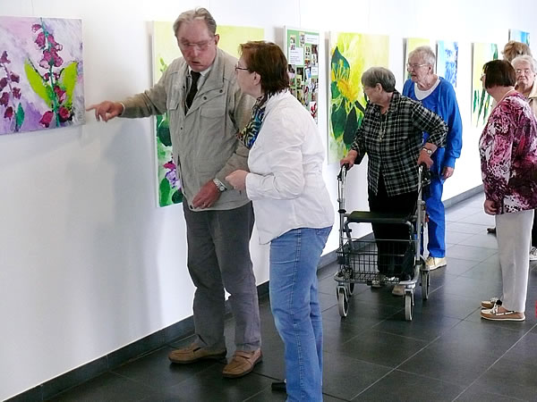 Auf den dritten Bilderzyklus mit dem Thema „Gartenblumen“ stießen Mitte August die Künstlerinnen und der Künstler zusammen mit ihrem Freundeskreis in den Räumen der Tagesstruktur an. Danach erklärten Ursula Auel (73 Jahre), Marianne Bals (76 Jahre), Lieselotte Lohre (79 Jahre), Doris Pernau (73 Jahre), Helga Schmidt (91 Jahre), Edeltraut Tusch (74 Jahre), Bettina von Wartenberg (70 Jahre) und Horst Jung (65 Jahre) ihre Gemälde.