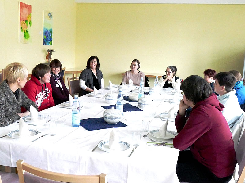 Petra Stahr und Wiebke Bewernitz vom „NetzwerkBüro Frauen und Mädchen mit Behinderung / chronischer Erkrankung NRW“ besuchten Mitte Januar die Frauengruppe „Mutig und Stark“ sowie leitende Mitarbeiterinnen des Frauenheims Wengern, Ingrid Backhaus und Edelgard Spiegelberg. Nach einer kurzen Vorstellung der Einrichtung und Informationen zum Stand der Anti-Gewalt-Arbeit lernten sich die Mitarbeiterinnen des NetzwerkBüros und die Mitglieder der Frauengruppe beim Mittagessen näher kennen.