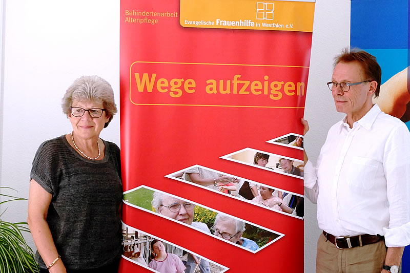 Angelika Weigt- Blätgen, leitende Pfarrerin und Geschäftsführerin der Evangelischen Frauenhilfe in Westfalen e.V. und Paul Linnemann berichten über die heutigen gesellschaftlichen Voraussetzungen und Herausforderungen der Pflegeausbildung.