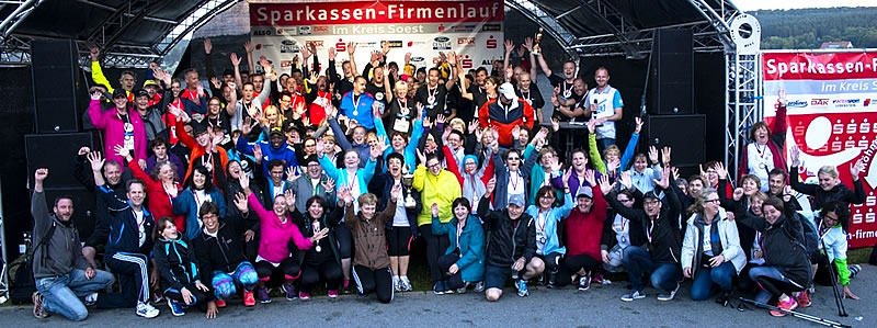Firmenlauf am Möhnesee mit Rekordbeteiligung: 4000 Läufer waren am Möhnesee unterwegs, eine ganze Reihe wieder in spaßigen Kostümen, die Belegschaften von gut 220 Betrieben, Büros, Behörden. Den ganzen Tag hatte es wie aus Kübeln geschüttet, abends, zum Start, blieb's dann trocken.