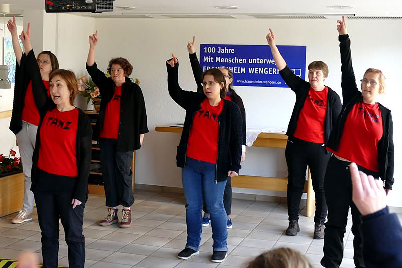 Anlässlich der weltweiten Protestaktion „One billion rising“ setzte die Tanztheatergruppe des Frauenheim Wengern unter Leitung der Bewegungslehrerin Ilona Korge-Niehaus das Lied „Spreng die Ketten“ von Nicole Bornkessel und Monika Stengl in Bewegung um.