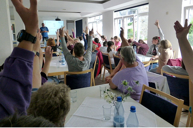 Zur ersten Frauen-Vollversammlung im Frauenheim Wengern kamen Anfang August 59 Frauen. Eingeladen hatte die Frauengruppe „Mutig und Stark“. Mitte Juli hatten sie mit ihrer Assistenz Sandra Förster die Einladung entworfen. Mit Hilfe der Verwaltung wurde diese in den Arbeits- und Wohnbereichen und in den Treffpunkten verteilt und so über 120 Frauen angesprochen.