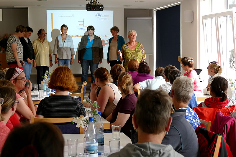 Die Gesamteinrichtungsleiterin Edelgard Spiegelberg eröffnete die 1. Frauen-Vollversammlung. Dann stellten sich die Mitglieder der Frauengruppe sowie die Referentinnen Marion Steffens und Andrea Stolte von „Gesine-Netzwerk Gesundheit“ sowie Anne-Marie Bach-Zelewski und Axel Rainero vom „Sozialer Dienst WfbM“ vor.