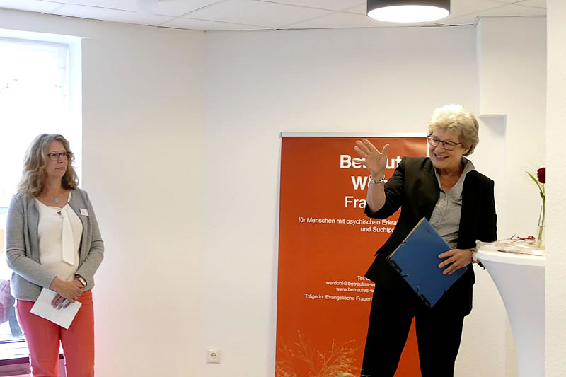 Die Bürgermeisterin der Stadt Werdohl, Sylvia Voßloh, und die Vorsitzende der Trägerin, Inge Schnittker, sprachen allen Beteiligten ihre Glückwünsche zu den Räumen aus, nachdem Angelika Weigt-Blätgen, leitende Pfarrerin der Trägerin, mit einem geistlichen Impuls die Anwesenden begrüßte. Die beiden langjährigen Mitarbeiterinnen, Ruthild Lindemann und Katrin Beyer-Erstmann, erzählten unterhaltsam von den Wegstationen des Arbeitsbereiches.