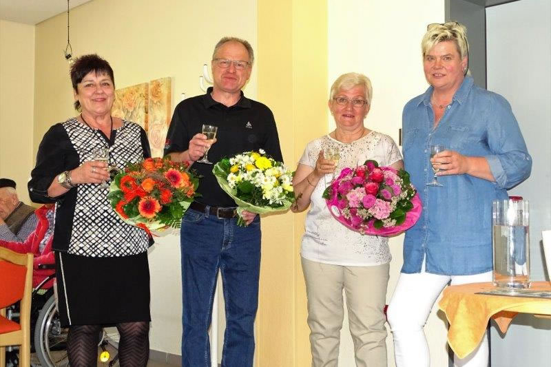 Mit einer kleinen Feierstunde im Kreis der Kolleginnen und Kollegen Ende April bedankte sich Hausleiterin Christiane Vössing bei Irmgard Berlage, Christoph Tschäpe und Angelika Bahl für ihren jahrelangen vorbildlichen und engagierten Einsatz zum Wohle und im Interesse der hilfe- und pflegebedürftigen Heimbewohnerinnen und Heimbewohner.