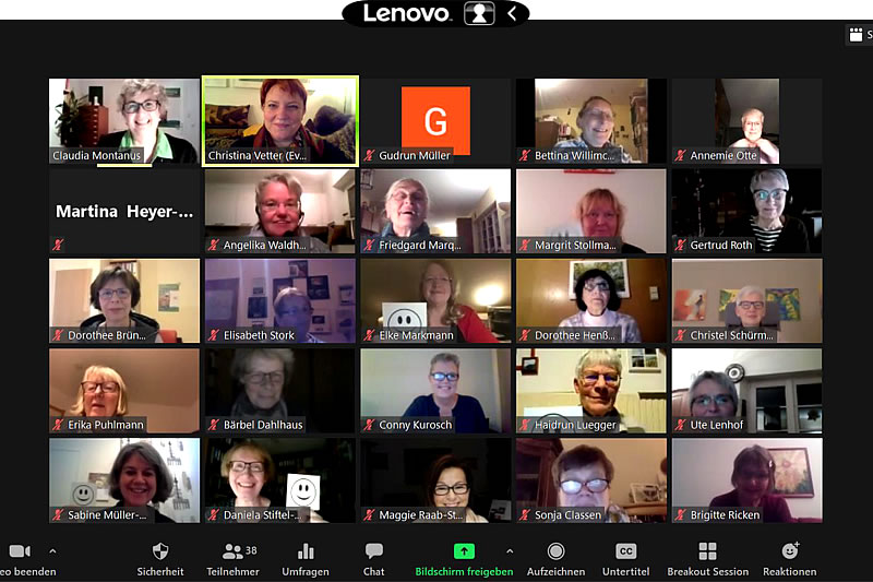 Für die 40 Teilnehmerinnen hieß das: Sie bekamen ein „echtes“ (analoges) Postpaket, trafen sich per Video über Zoom an drei Abenden in einer Woche und nutzten die digitale Bibliothek, Moodle, zum Lesen von Texten, Anschauen von interessanten Filmen und Referaten oder Einüben eines Tanzes. Vieles war in der letzten Novemberwoche möglich: Begegnung, Lachen, Pannen, Kleingruppengespräche, Umfragen, Brainstorming, Diskussion und Bibelarbeiten. Und als am Ende das sogenannte „Desasterfood“-Paket geöffnet und bestaunt wurde und schließlich beim liturgischen Abschluss das grüne Segensbändchen in die Kamera gehalten wurde, so dass sich eine Segenskette ergab - da war Gänsehaut pur angesagt.
