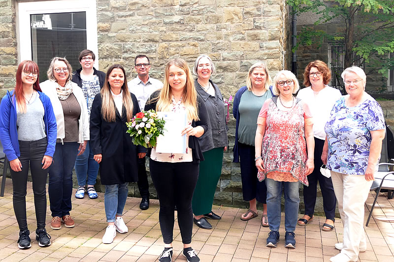 Die Freude bei Jasmin Brüggemann war groß und der Ausbildungsbetrieb, die Evangelische Frauenhilfe in Westfalen e.V., war stolz: Jasmin Brüggemann konnte Anfang Juli ihr sehr gutes IHK-Zeugnis als Kauffrau für Büromanagement aus den Händen der Leitenden Pfarrerin Birgit Reiche entgegennehmen.