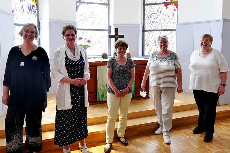 Vorsitzende Renate Leu und Stellvertretende Vorsitzende Karin Hartz-Hellemann aus Braunschweig trafen sich in Soest mit der Vorsitzenden Angelika Waldheuer, dem Vorstandsmitglied Helga Berghoff und der Leitenden Pfarrerin Birgit Reiche.