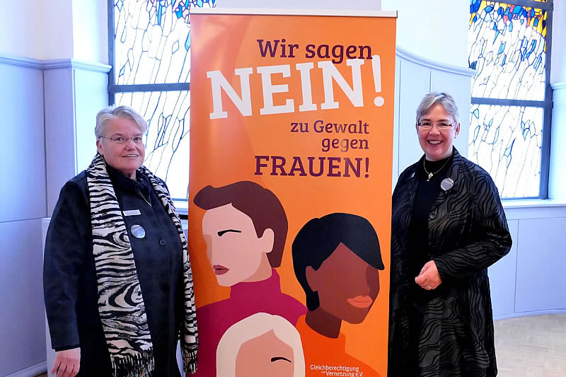 Die Vorsitzende Angelika Waldheuer und die Leitende Pfarrerin Birgit Reiche sagen: NEIN zu Gewalt an Frauen!