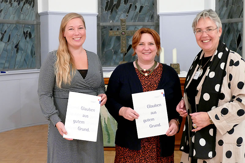 Die Zertifikate überreichte Pfarrerin Birgit Reiche den beiden Multiplikatorinnen Christina Vetter und Lena Sauerland (v.r.).