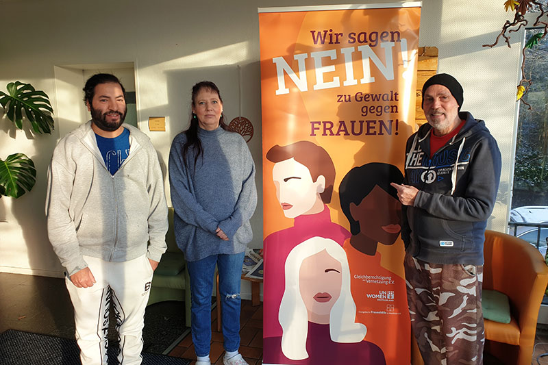 Die Beiratsmitglieder der Bewohnerinnen und Bewohner von Haus WegWende sagen: NEIN zu Gewalt an Frauen! Haus WegWende in Werdohl ist ein Angebot für erwachsene Menschen mit einer psychischen Behinderung, die vorübergehend oder langfristig einen stationären Hilfebedarf haben. Die Bewohner*innen und Mitarbeitenden zeigen Gesicht und sagen gemeinsam, dass Gewalt gegen Frauen beendet werden muss.