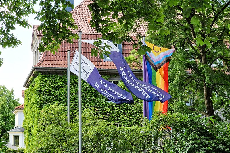 Im Juni weht an zwei Standorten der Evangelischen Frauenhilfe in Westfalen (EFHiW) erstmals die Regenbogenfahne – in Warburg am Alten- und Pflegeheim Haus Phöbe sowie in Soest auf dem Gelände am Feldmühlenweg. Die Initiative dazu kam aus der Praxis: Carolin Reitemeyer, Einrichtungsleitung in Warburg, regte das Hissen der Fahne an. Die Idee fand innerhalb der EFHiW schnell Zustimmung – denn die Trägerin von mehr als 15 sozialen Einrichtungen steht schon lange und konsequent für ein respektvolles, menschenwürdiges Miteinander.