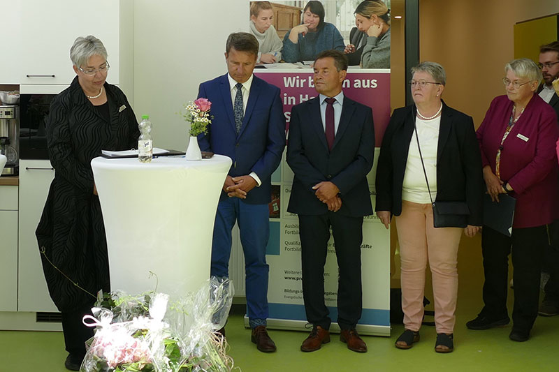 Zur feierlichen Eröffnung des BIP Mitte Mai waren zahlreiche Gäste mit herzlichen Grußworten angereist: Darunter auch Angelika Waldheuer, Vorsitzende der EFHiW, Landrat Michael Stickeln, Bürgermeister-Stellvertreter Anton Güthoff und Rimbeck Ortsvorsteherin Annette Lages. Nach Abschluss der Grußworte wurde an Pfarrerin Birgit Reiche symbolisch Schlüssel von Seiten des Architekturbüros Henning Schütt und auch im Namen der Fa. Dinger überreicht. Für die Gäste ist der Festakt ein sichtbares Zeichen: Die Region und die EFHiW als Trägerin investieren in die Zukunft. Neugierig und sichtlich angetan besichtigten sie beim anschließenden Tag der offenen Tür die frisch renovierten Räume.